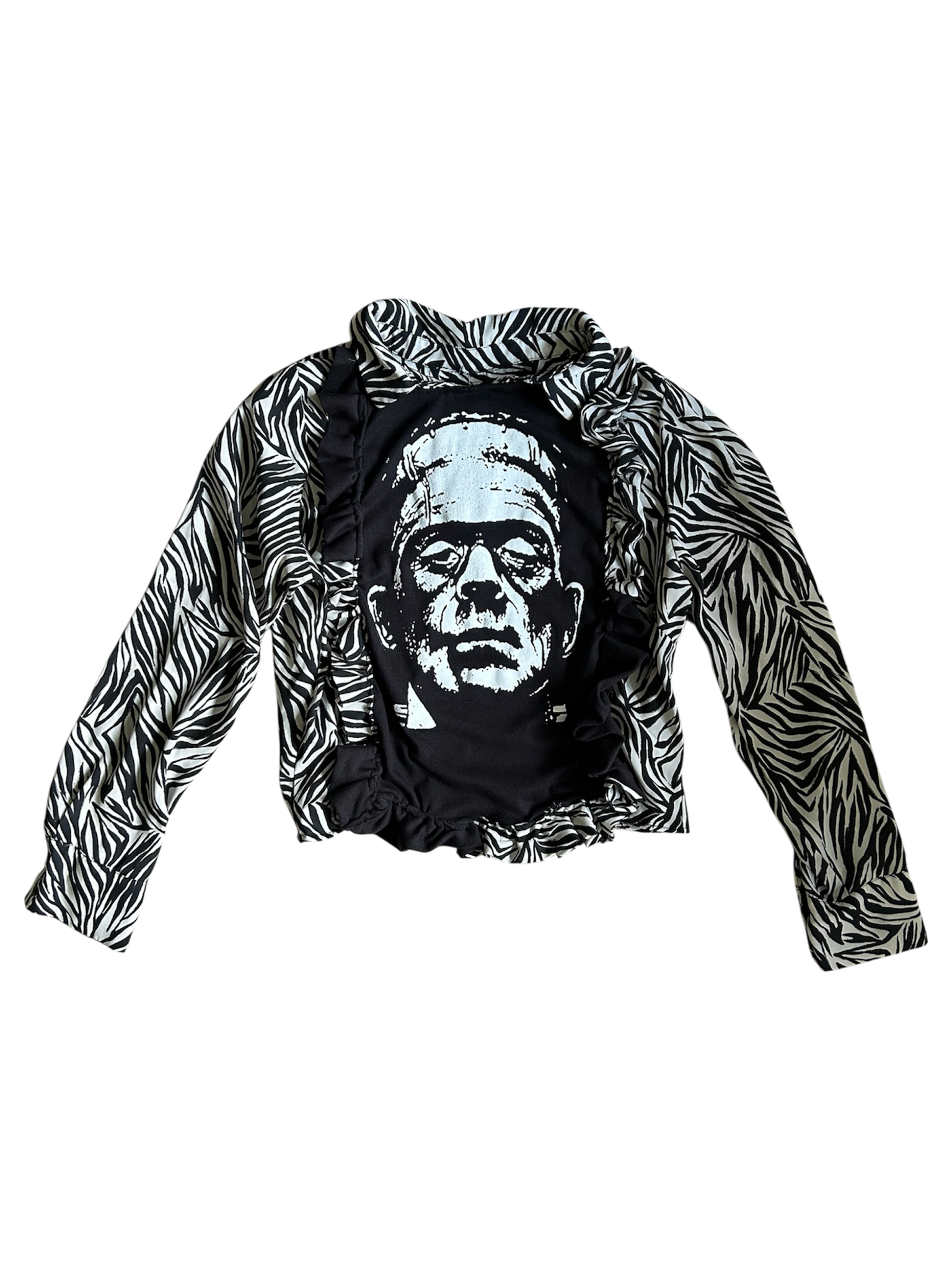 Upcycled Clothing - Frankenstein ruffle tee M