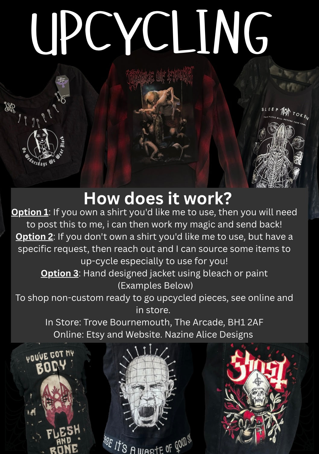 DESIGNS: Any design prints featured are NOT my own design and I do not claim them to be. Upcycled Items are made from preloved clothing, sourced online and in second hand stores.