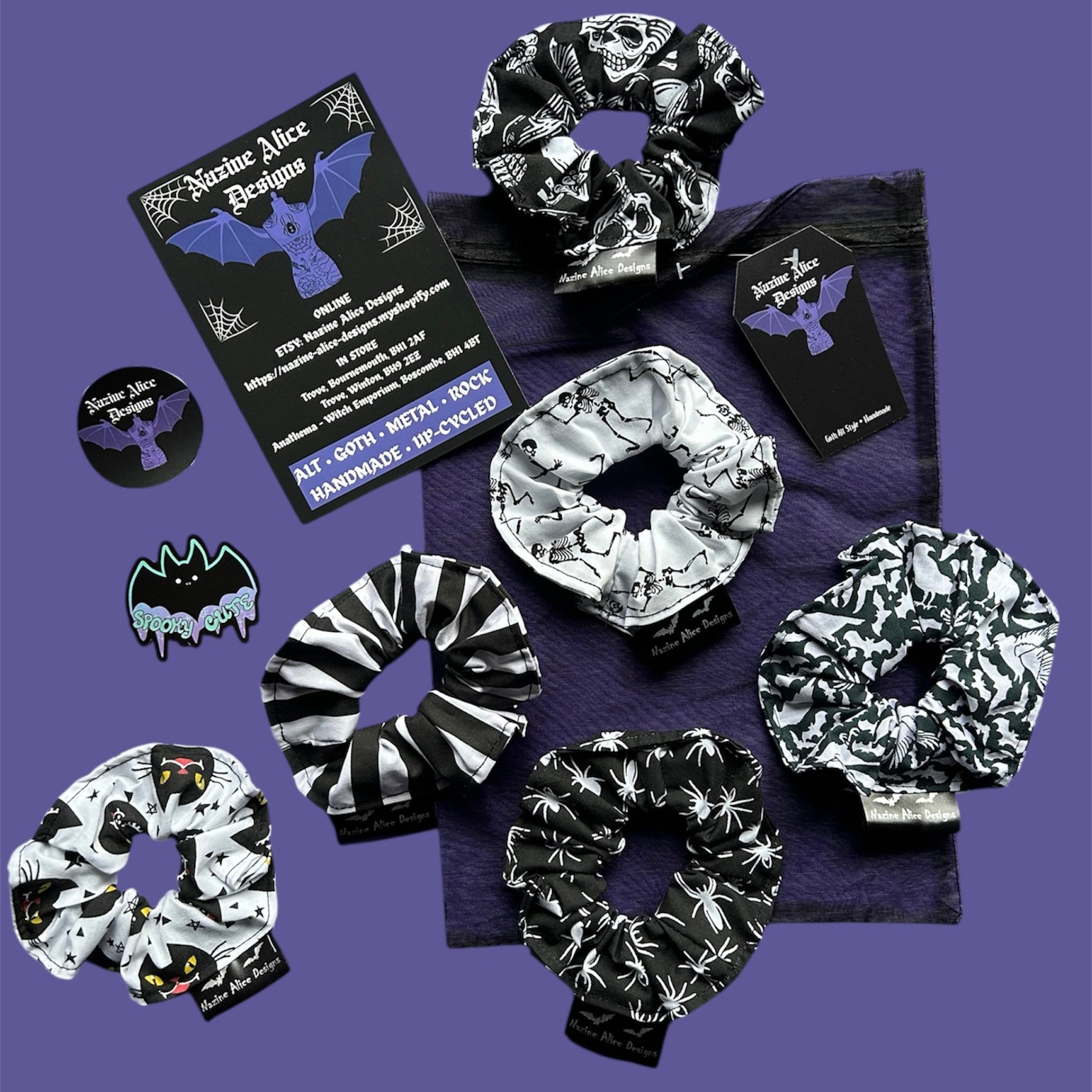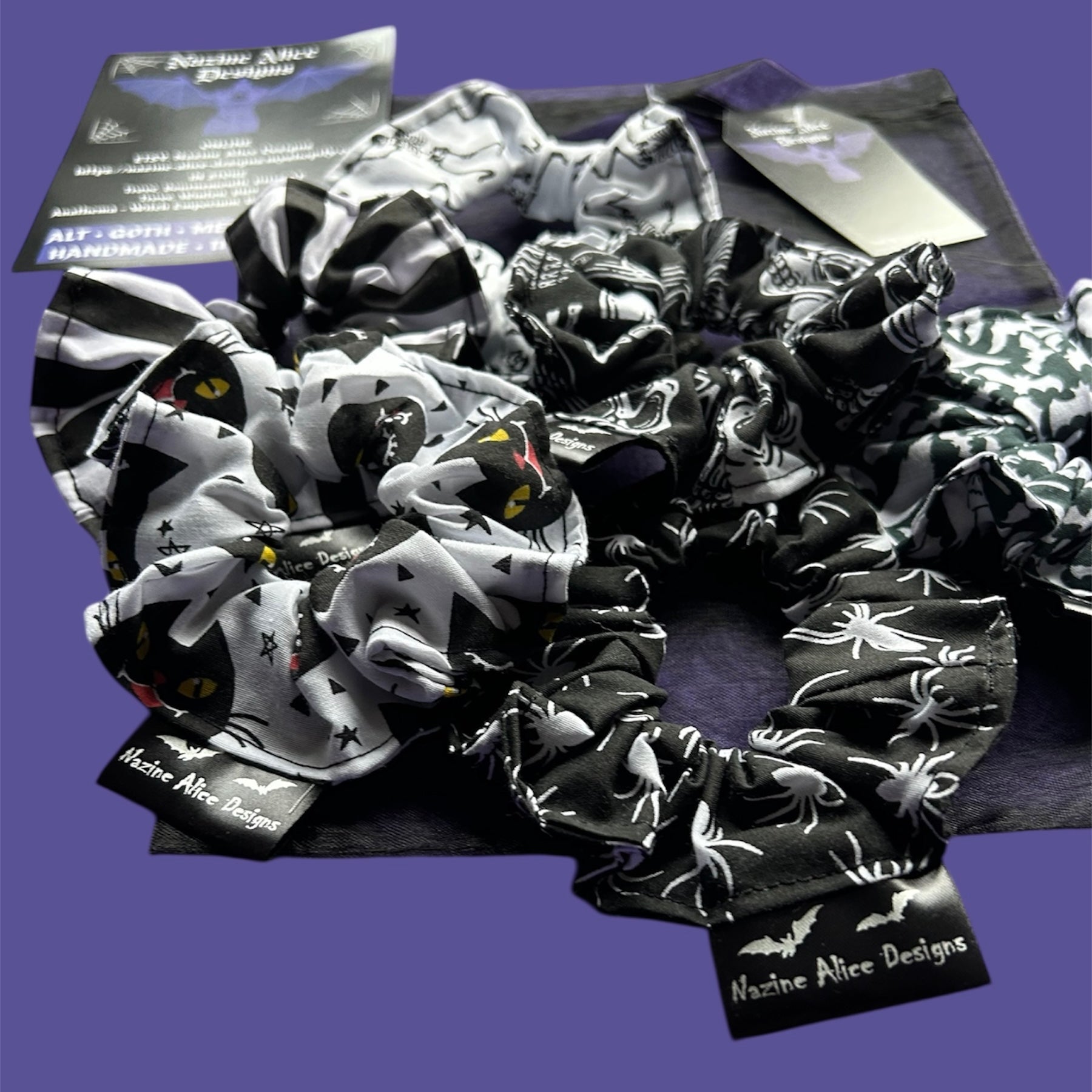 🖤GOTH HAIR SCRUNCHIES 🖤Gothic style isn’t just for fall and winter—keep it spooky all year round! Our handcrafted gothic accessories are perfect for summer, whether you’re heading to festivals, moonlit beach walks, or just embracing your alternative style in the sunshine.