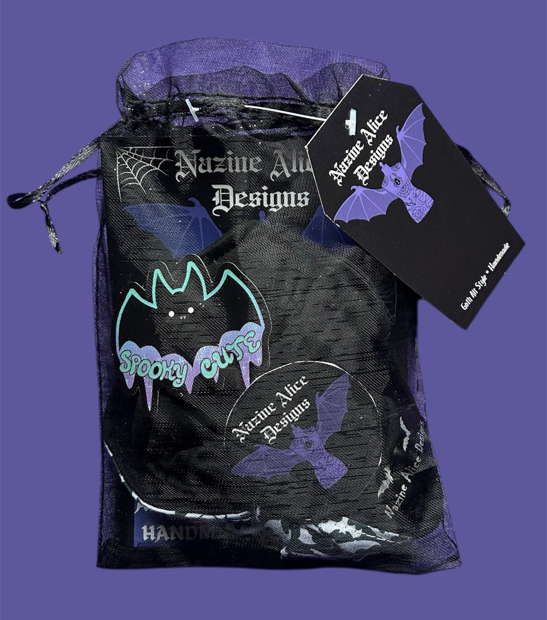Handsewn from a bats and crows fabric, and black recycled fabrics from upcycled clothing. All upcycled projects are thoroughly cleaned beforehand!